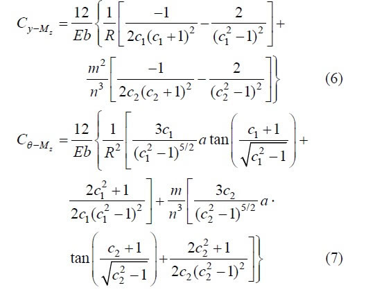 由表1中數(shù)據(jù)可知,采用文中推得的柔度計(jì)算式計(jì)算得到的結(jié)果與有限元的分析結(jié)果之間的誤差在8%以內(nèi),由此驗(yàn)證了柔度計(jì)算式的正確性。