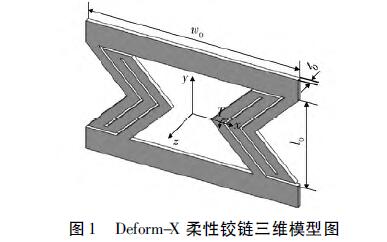 基于文獻提出的混合抗拉型(Mixedtensionresistant,MTR)柔性鉸鏈設計了Deform-X柔性鉸鏈,Deform-X柔性鉸鏈寬度為w0,長度為l0,厚度為t0,其三維結構如圖1所示。