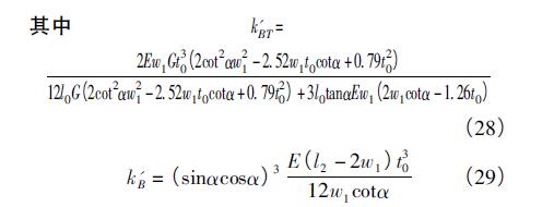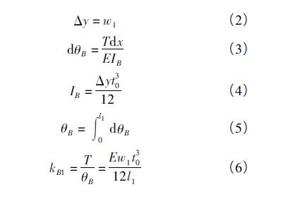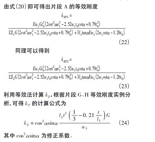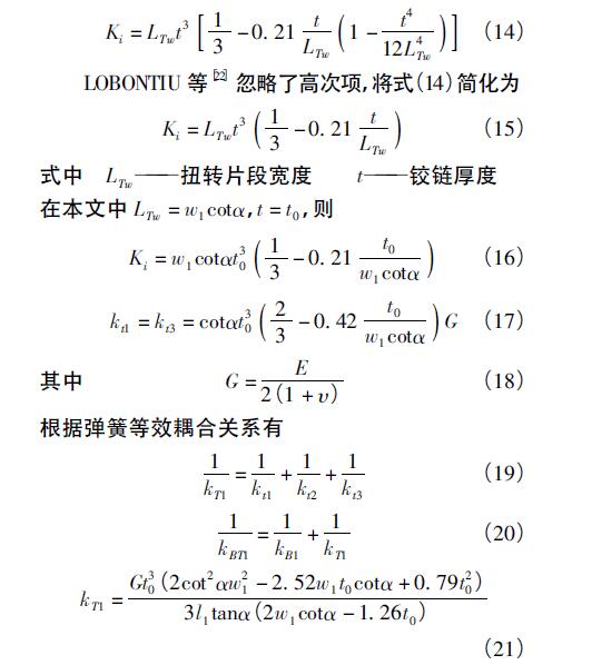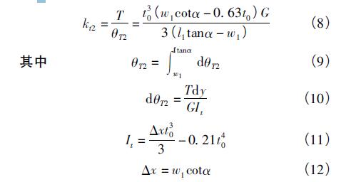 (2)當w1<y<l1tanα時,Δx長度不小于鉸鏈厚度t0,則鉸鏈扭轉等效剛度為