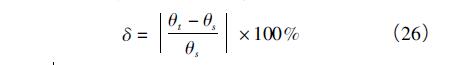 選取鈹青銅作為X型柔性鉸鏈材料,根據(jù)式(27)~(29)和表1、4中的數(shù)據(jù),可計算得X型柔性鉸鏈實例的等效剛度為keq=1512N·mm/rad。同樣,在ABAQUS中建立X型柔性鉸鏈實例的有限元仿真分析模型,施加相應的轉矩T即可得到仿真分析的彎曲變形轉角θs,分別計算可以得到其彎曲變形的理論轉角θt和相對誤差δ。