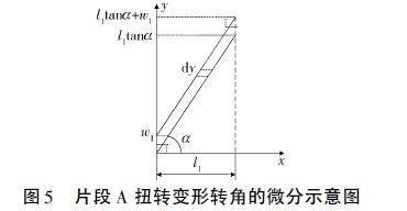 式中kB1———片段A的彎曲等效剛度IB———片段A的轉動慣量計算扭轉等效剛度,設彎扭耦合片段在轉矩T作用下扭轉變形轉角為θT,其微分示意如圖5所示。